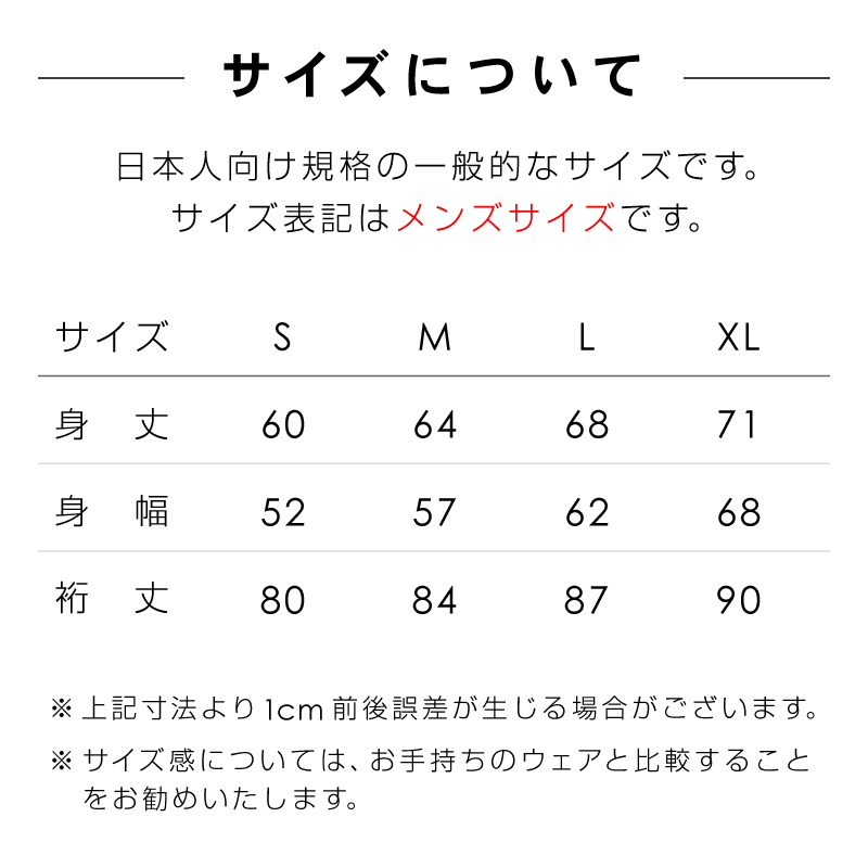 SサイズからXLサイズまで豊富なサイズ展開も魅力の一つです。