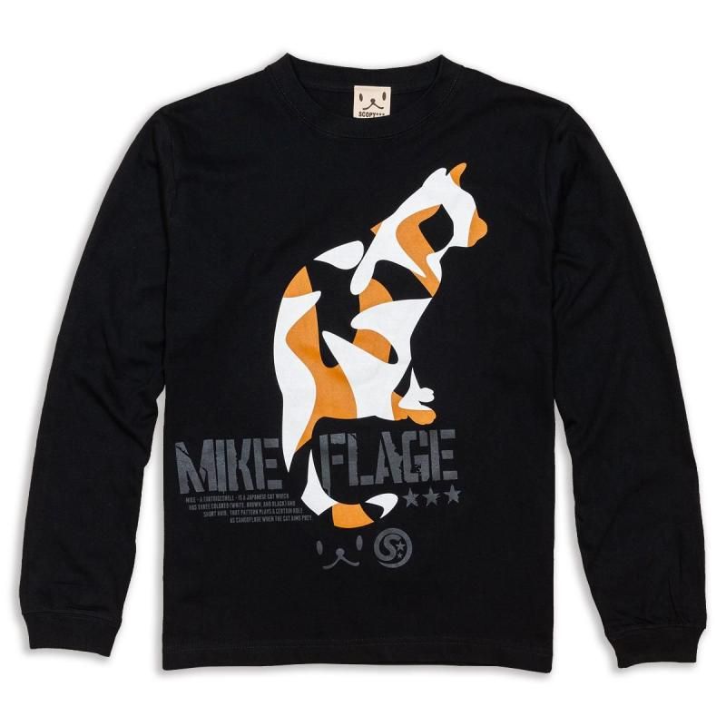 長袖 Tシャツ ロンT メンズ レディース 猫 MIKE-FLAGE - ブラック ネコ ねこ 猫柄 雑貨 SCOPY スコーピー